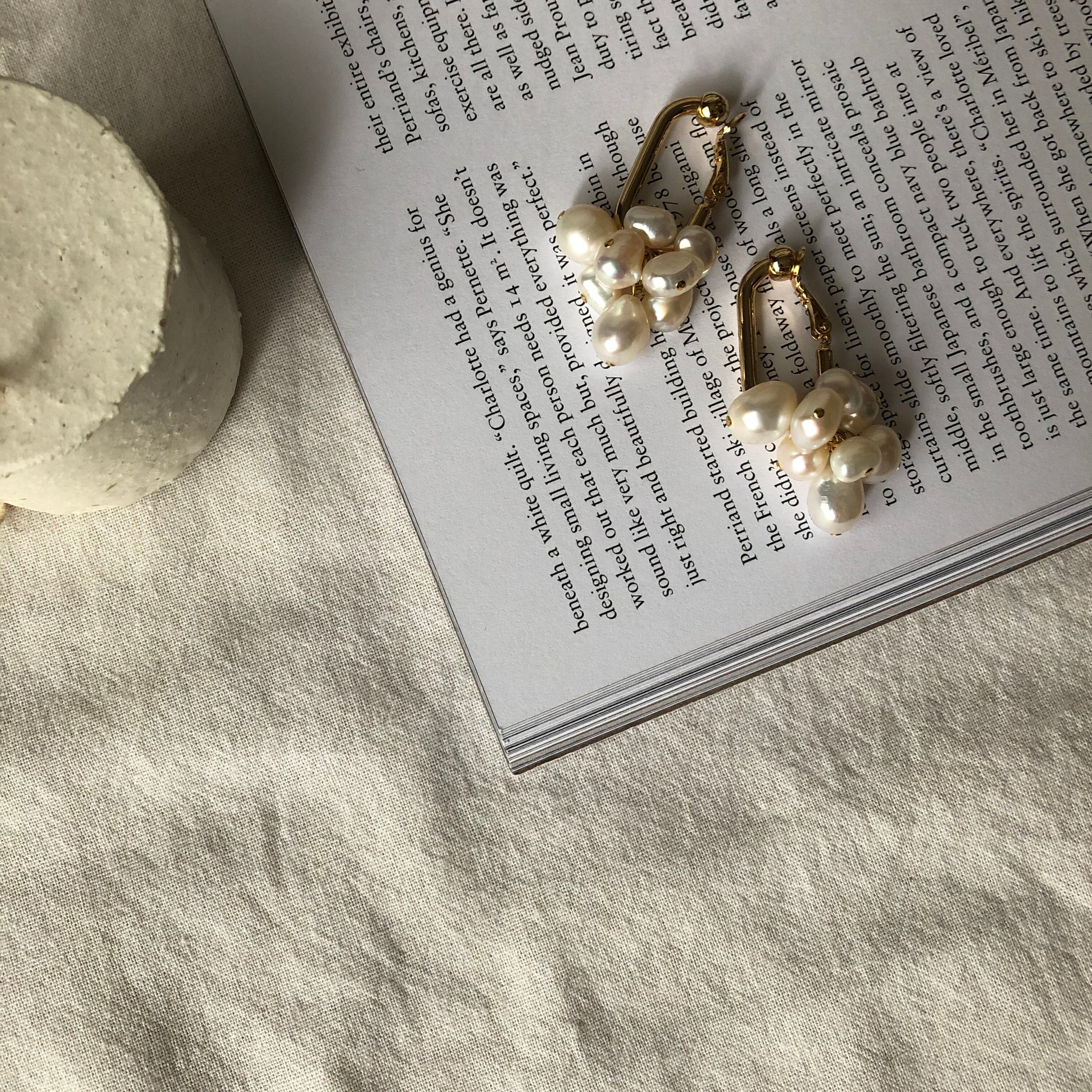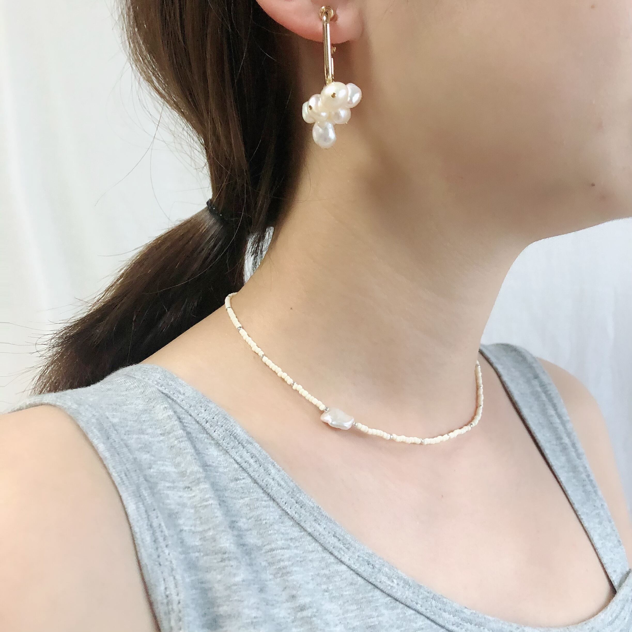 淡水パールがすずらんの花のようについている様子をイメージしてつくりました。