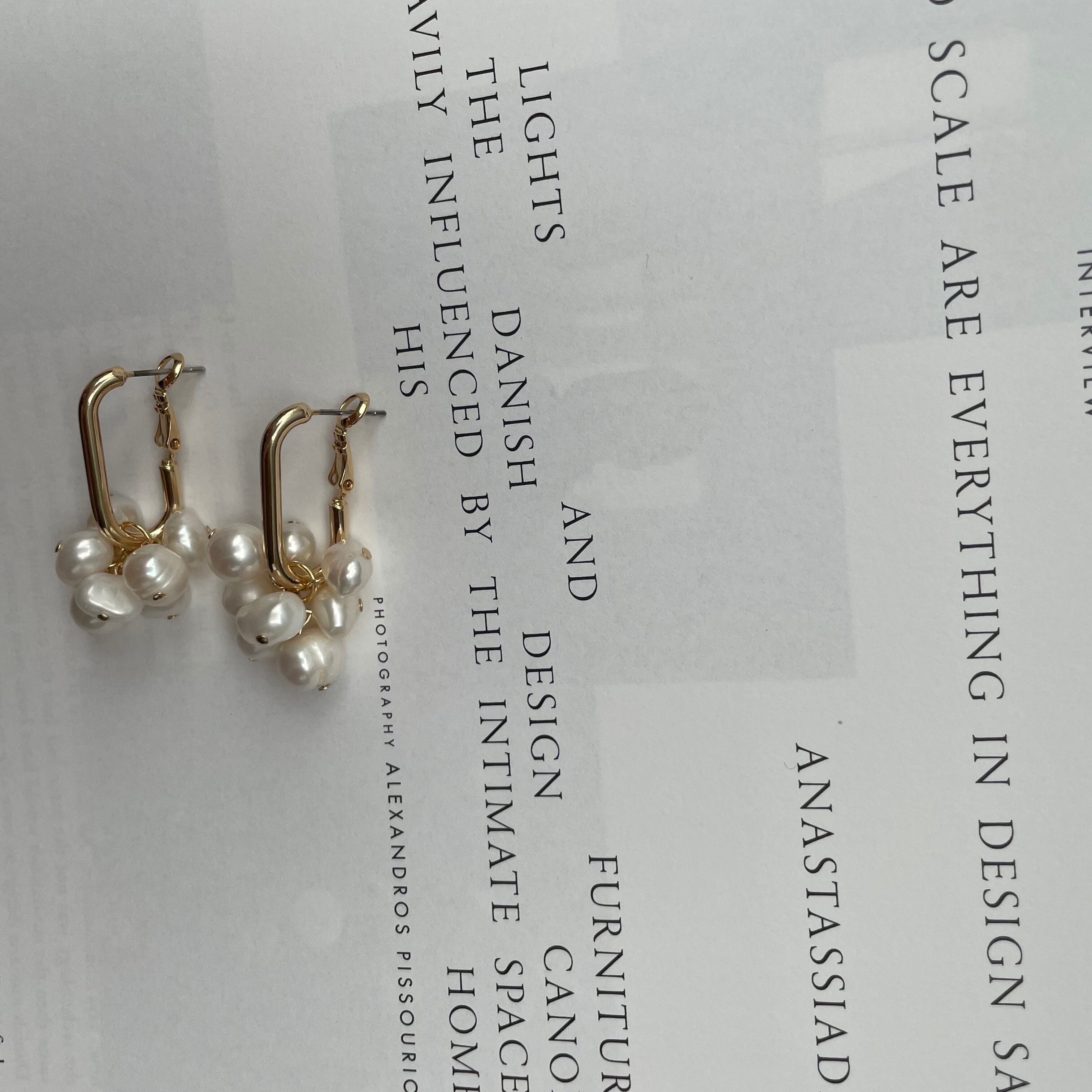 淡水パールにボリュームのあるメタルフープを組み合わせて、甘くなりすぎないデザインに仕上げました。