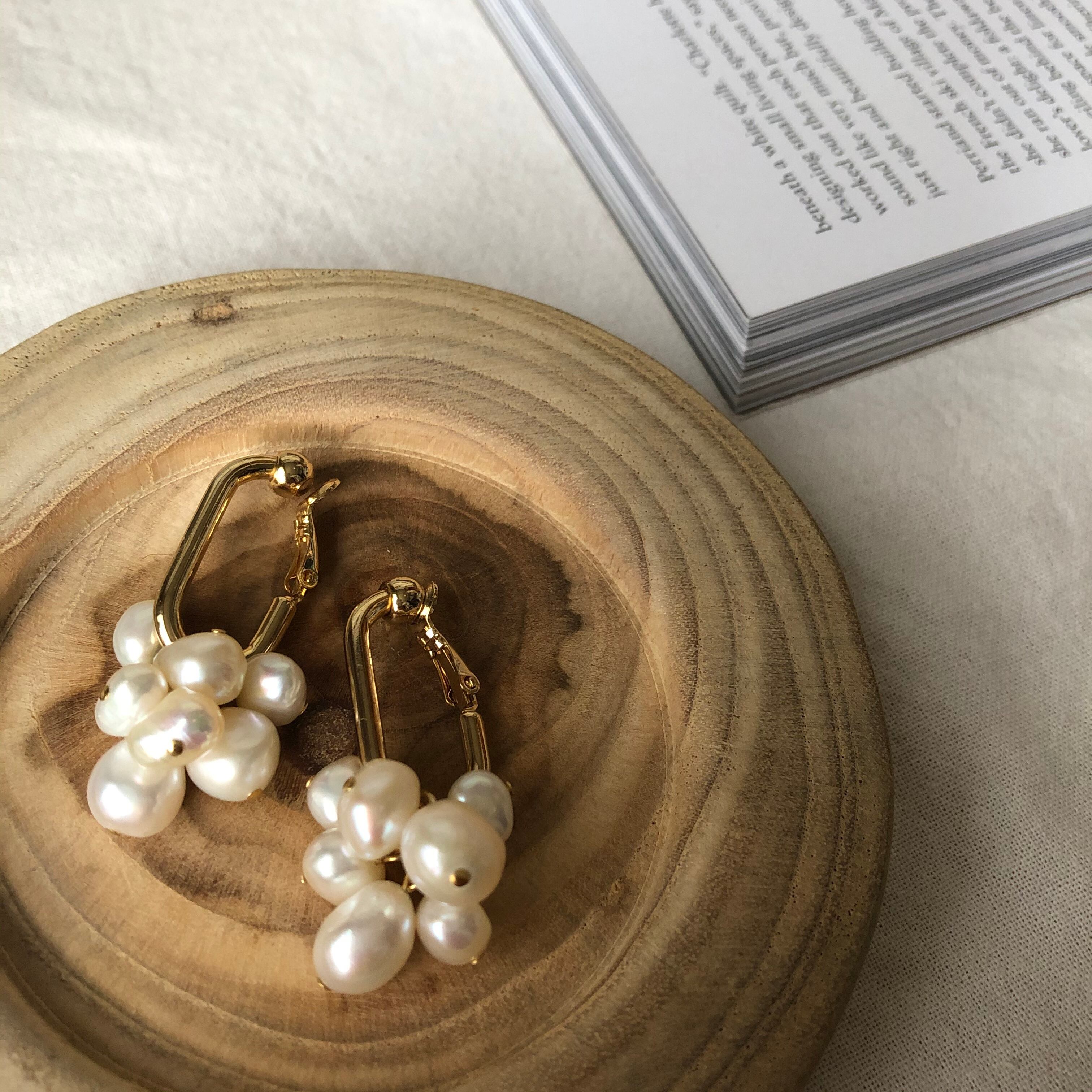 〈muguet〉pearl chunky hoop earring / pierce (gold)