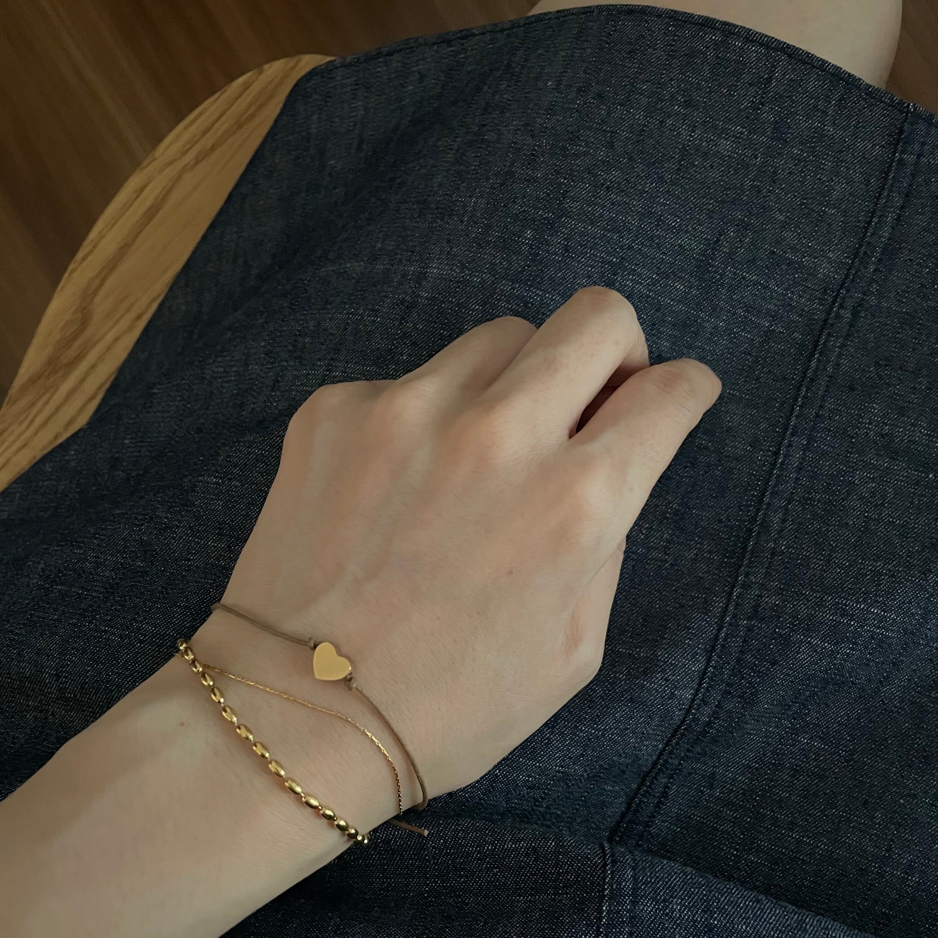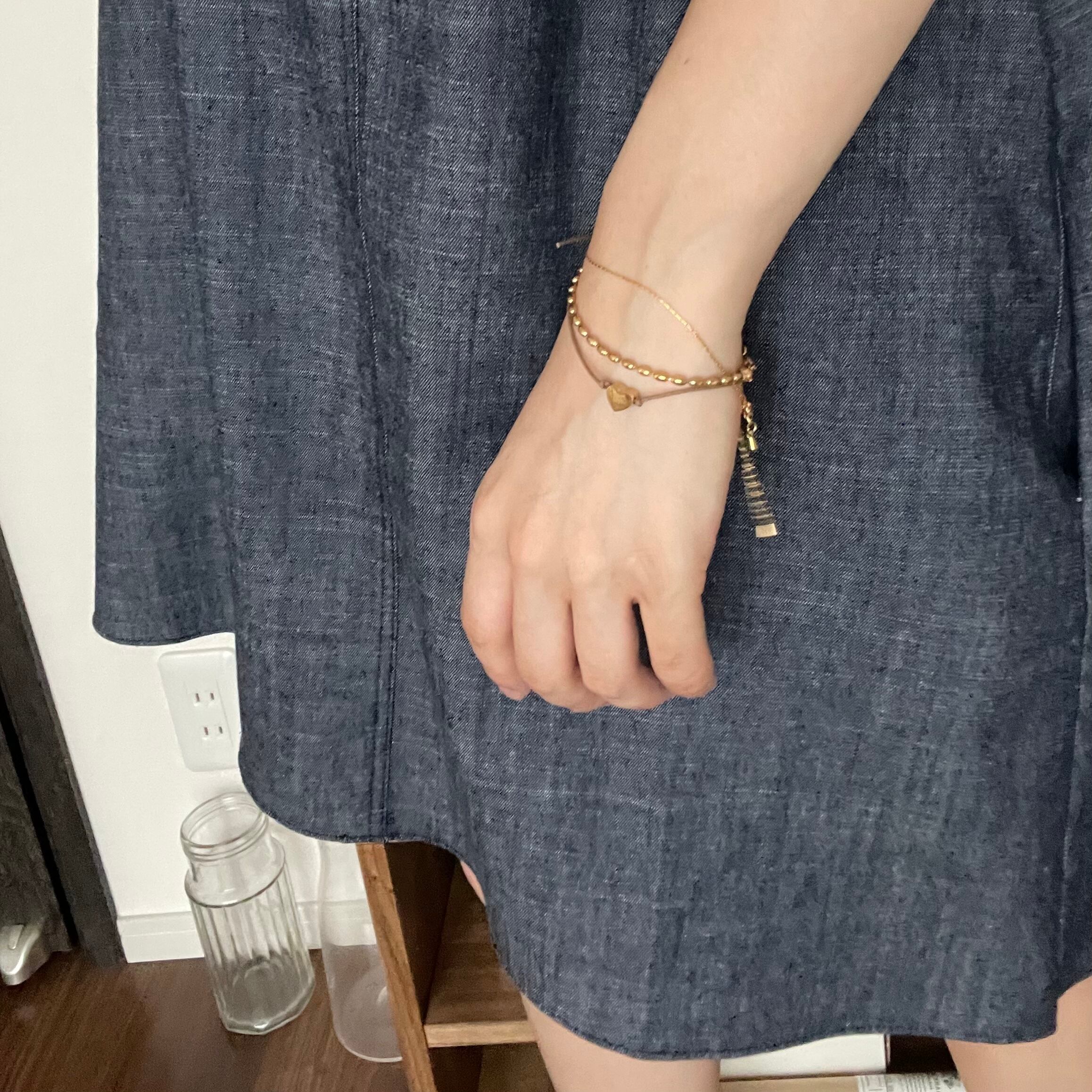 シンプルなデザインで他のブレスレットとの重ね付けもおすすめです。