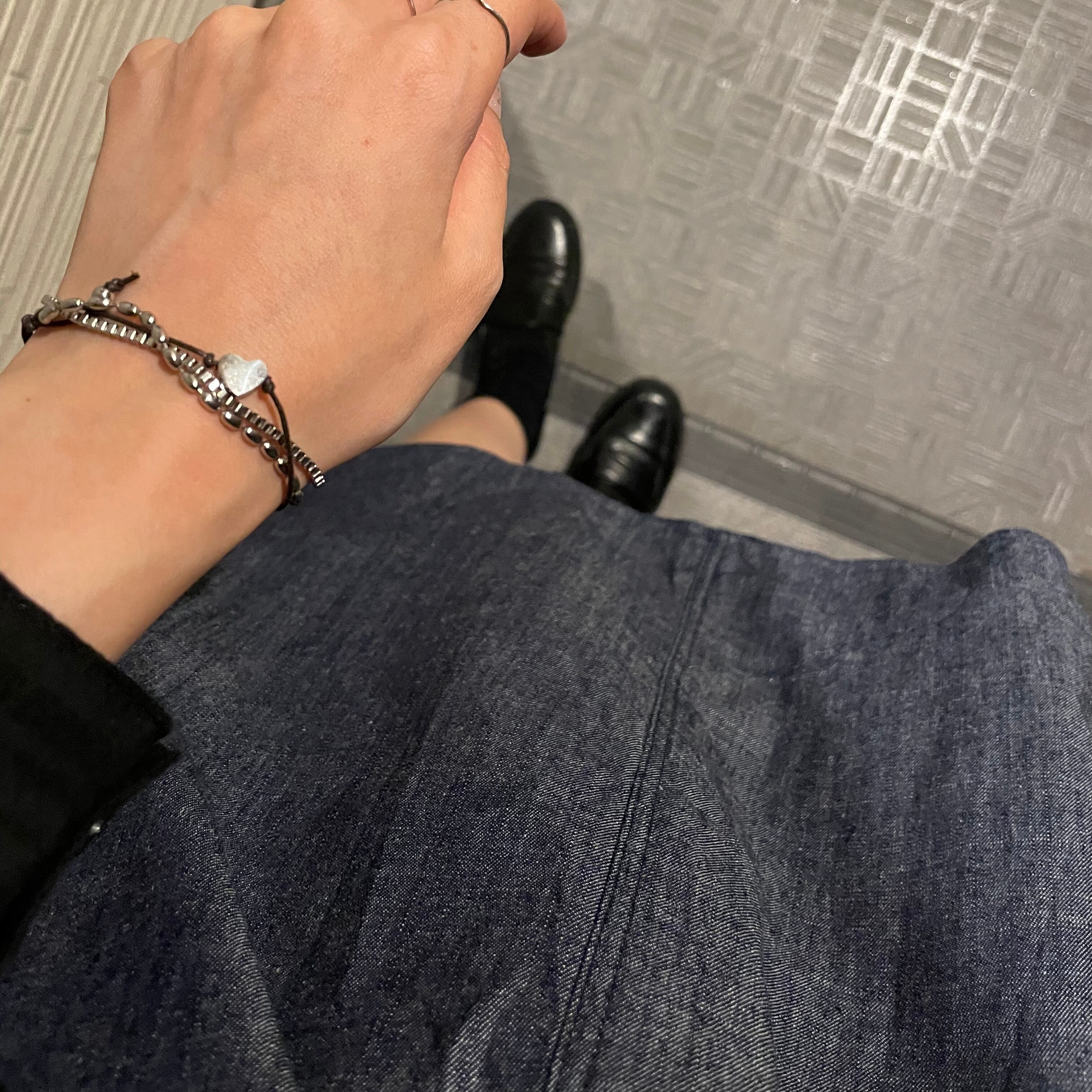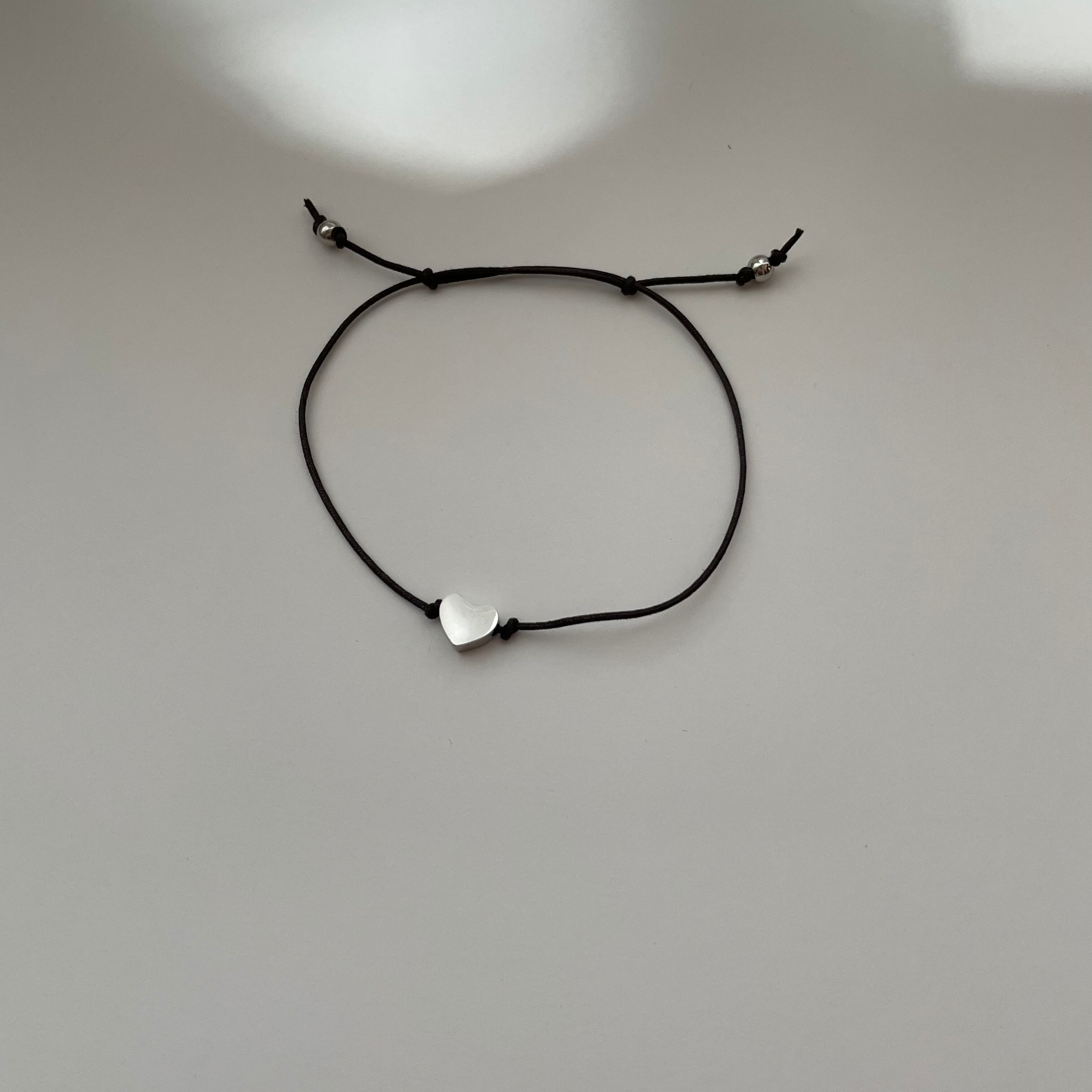 小さなハートモチーフがキュートなデザインのコードブレスレット。