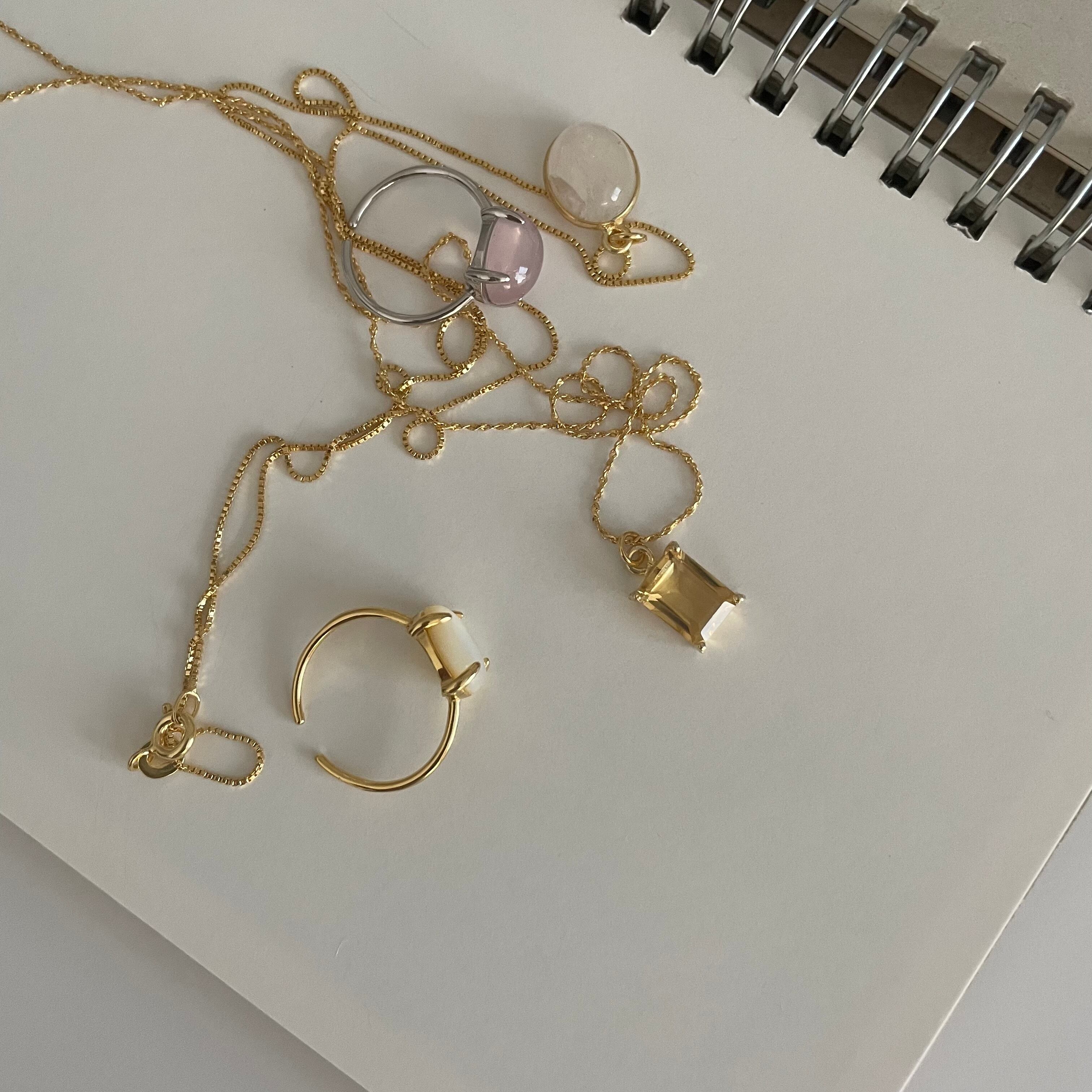 華奢なチェーンを使用しているので他のネックレスとの重ねづけもおすすめです。