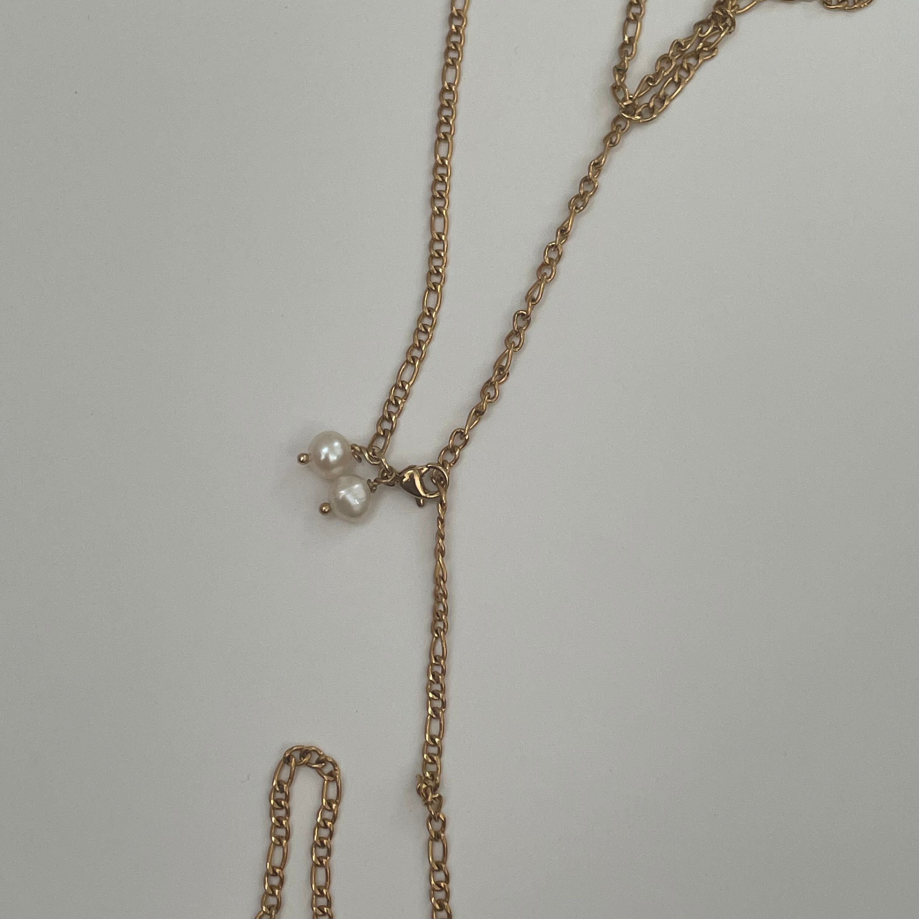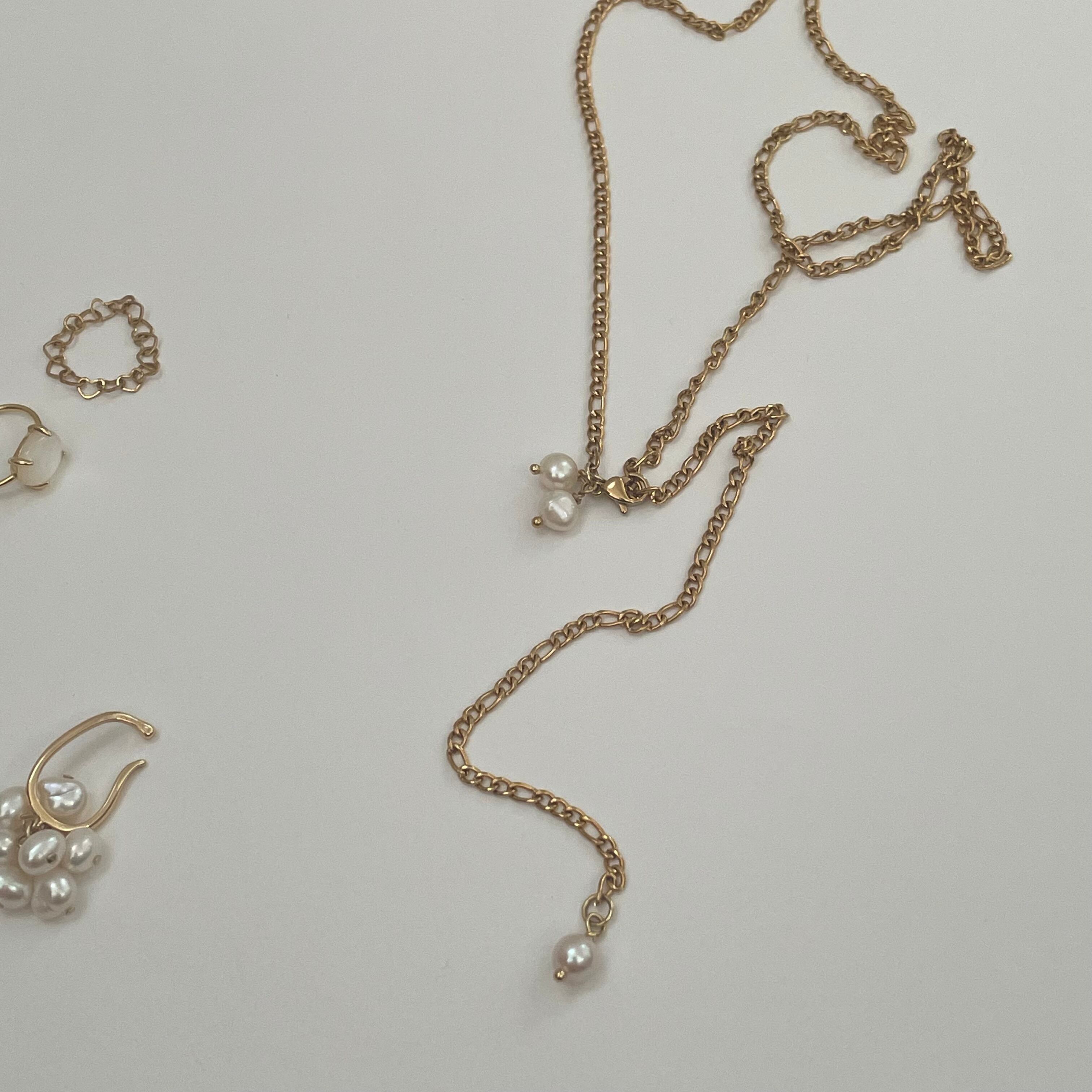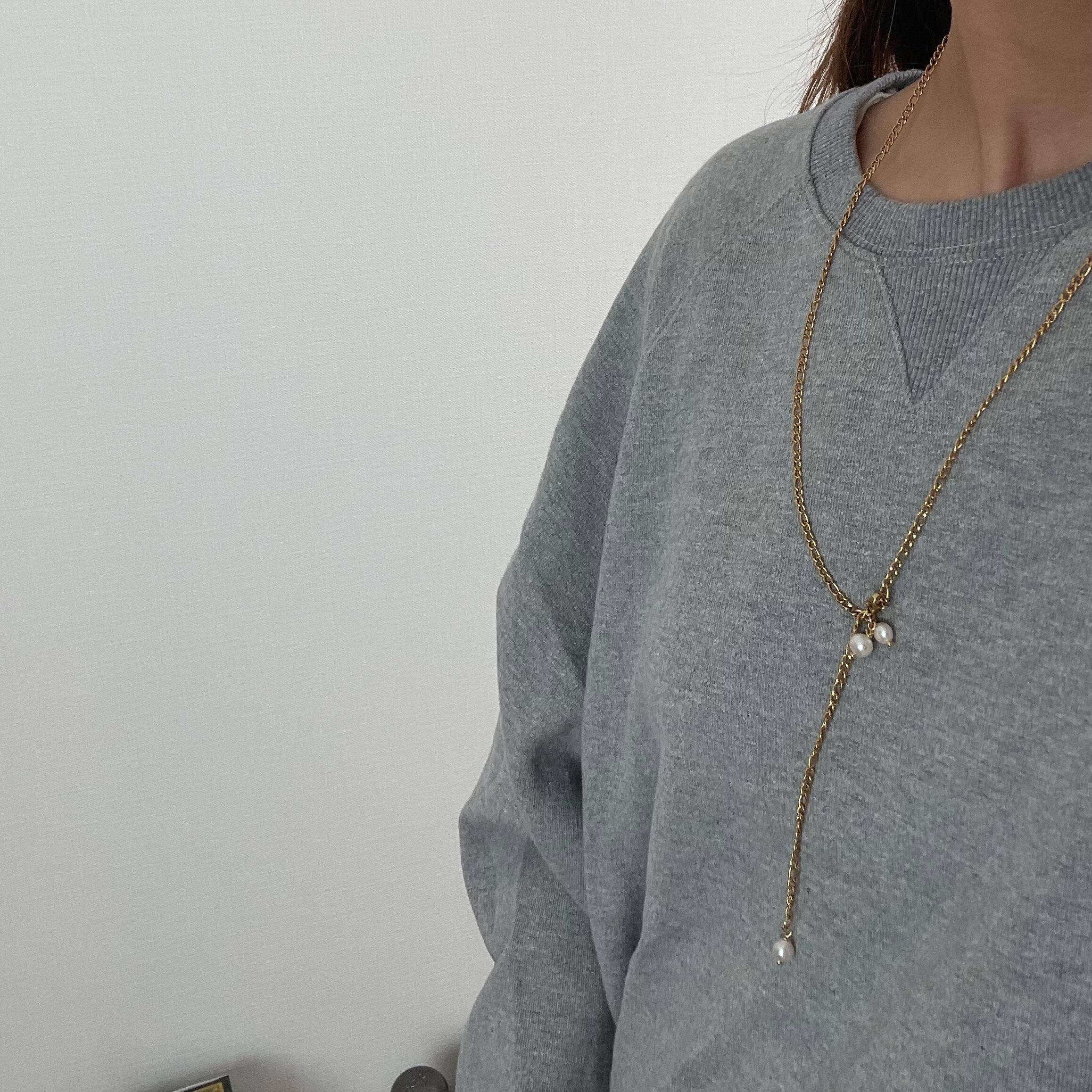 お好みの位置で金具を留められるラリエットのようなデザインで、お洋服や気分に合わせて長さを変えていただけます。