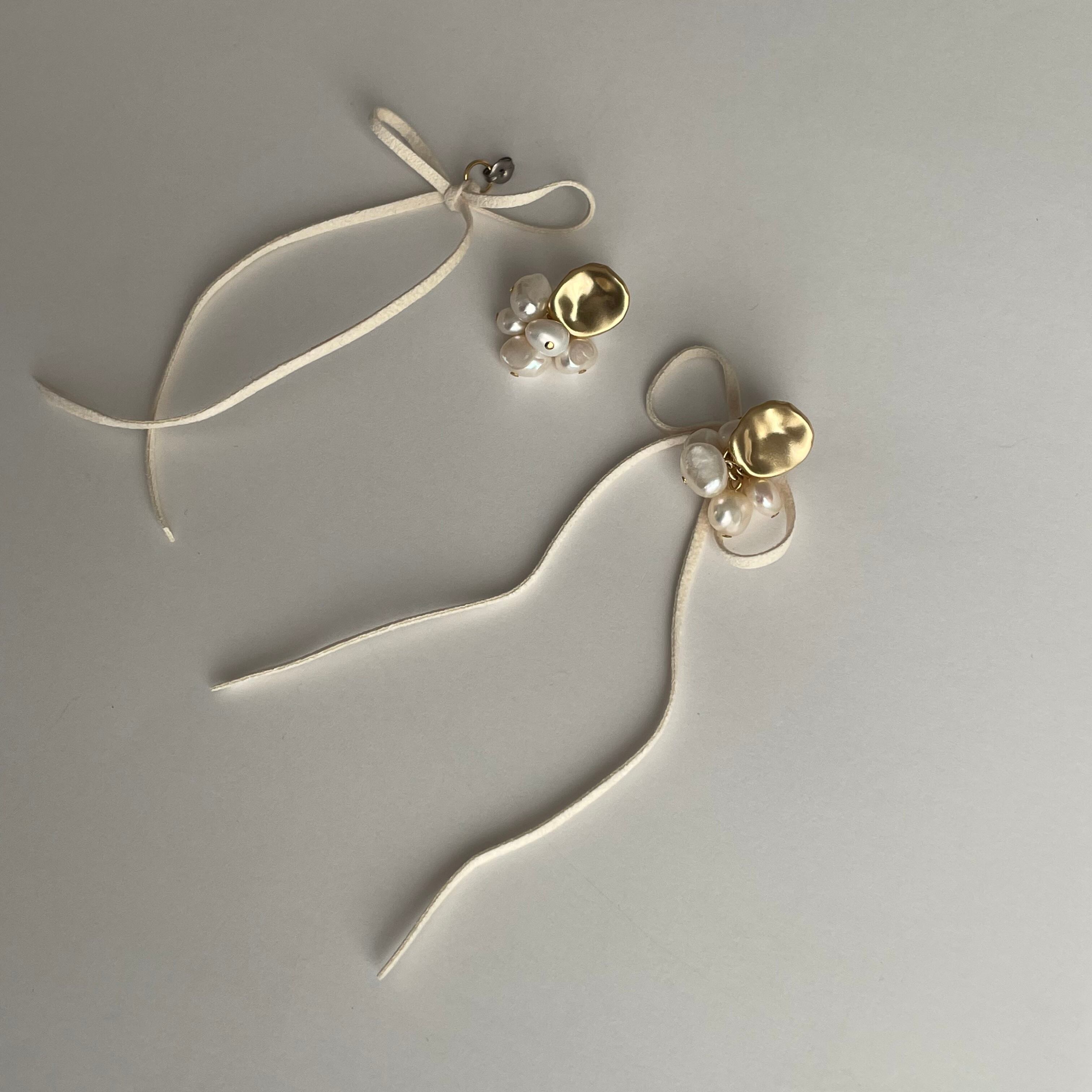 ピアス:キャッチにリボンがついている仕様のため、お手持ちの通常のキャッチに付け替えてお使いください。