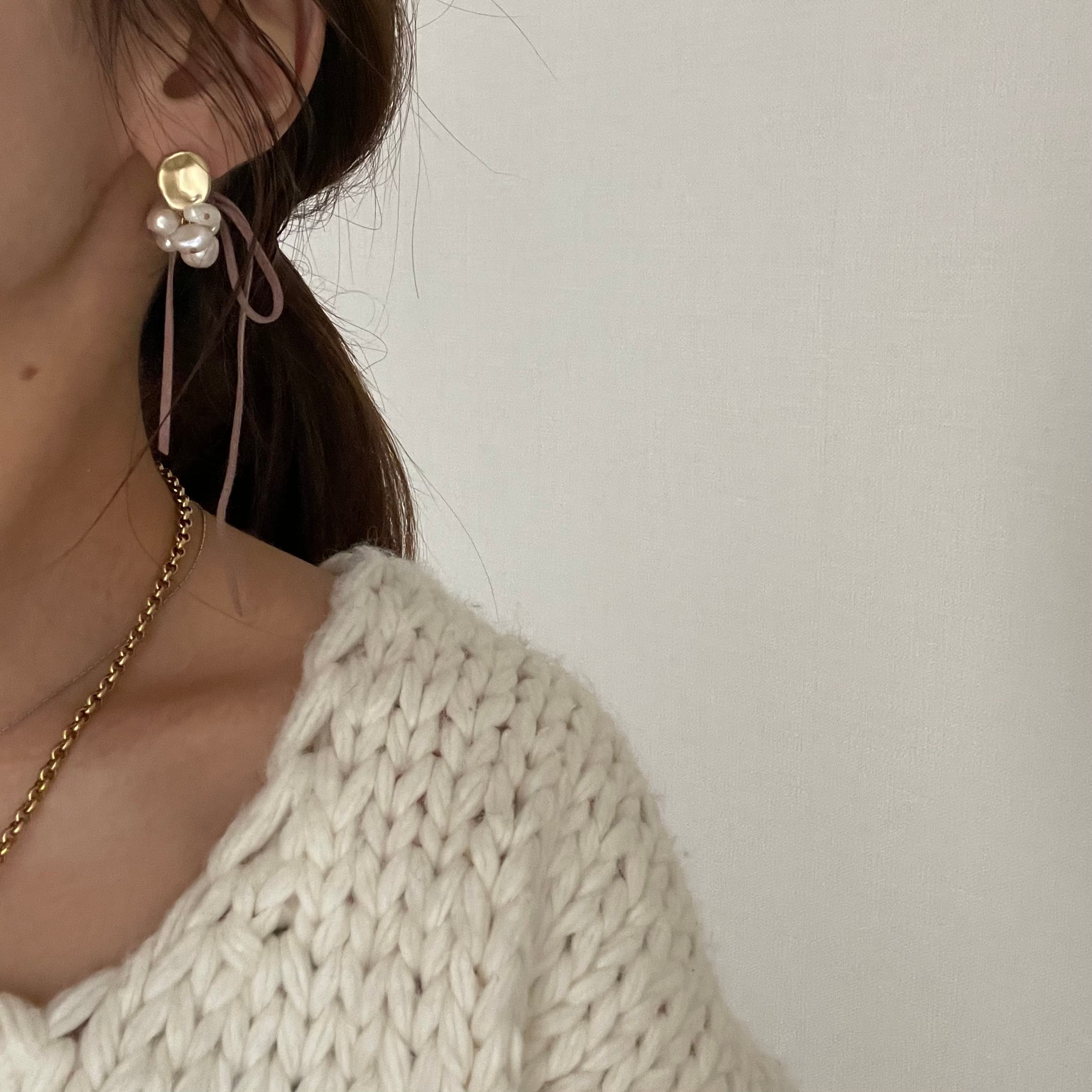 ピアス:キャッチにリボンがついている仕様のため、お手持ちの通常のキャッチに付け替えてお使いください。