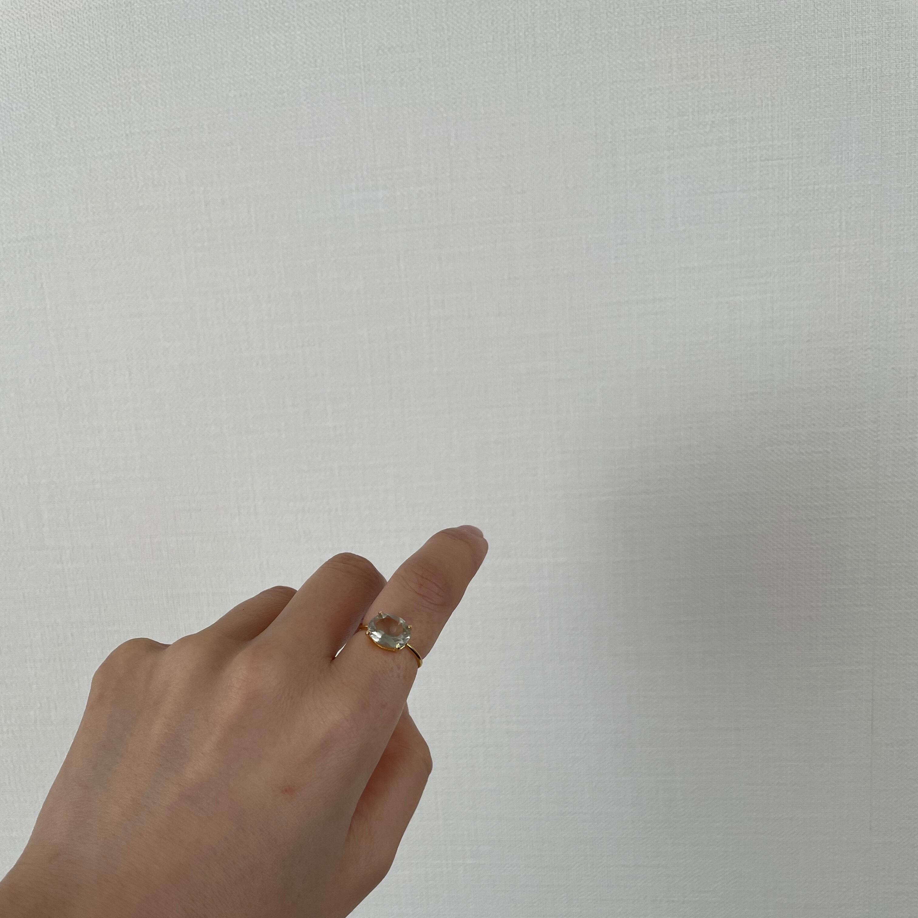 マスカットのような淡い色合いのgreen amethystの石が華やかに輝くリング。