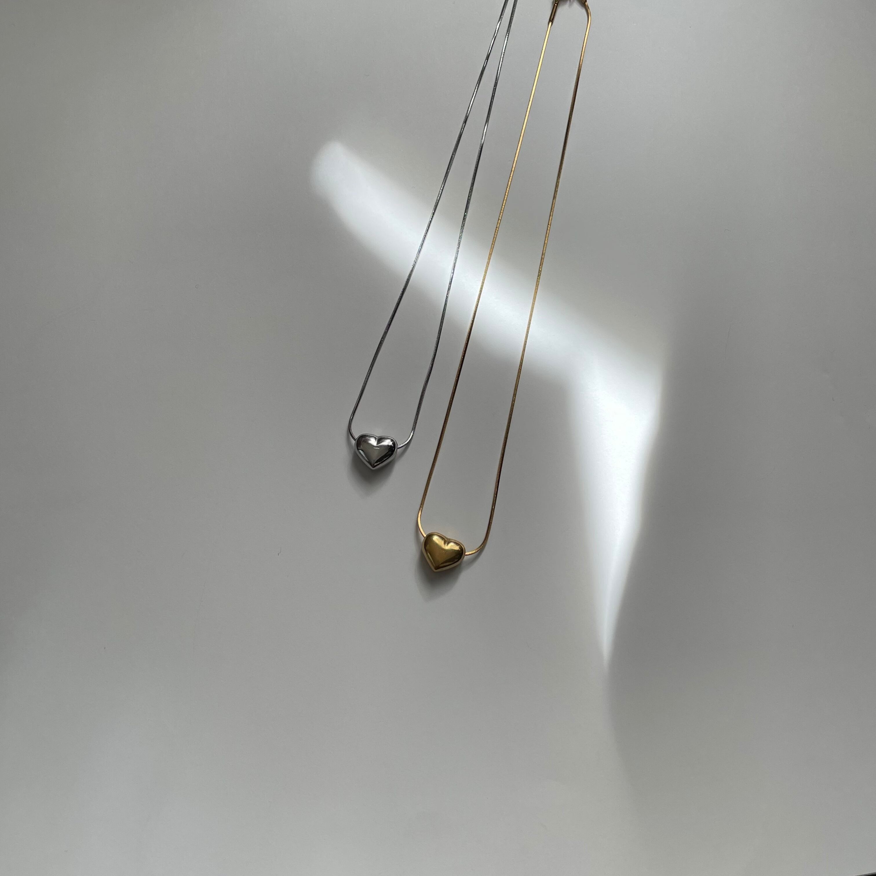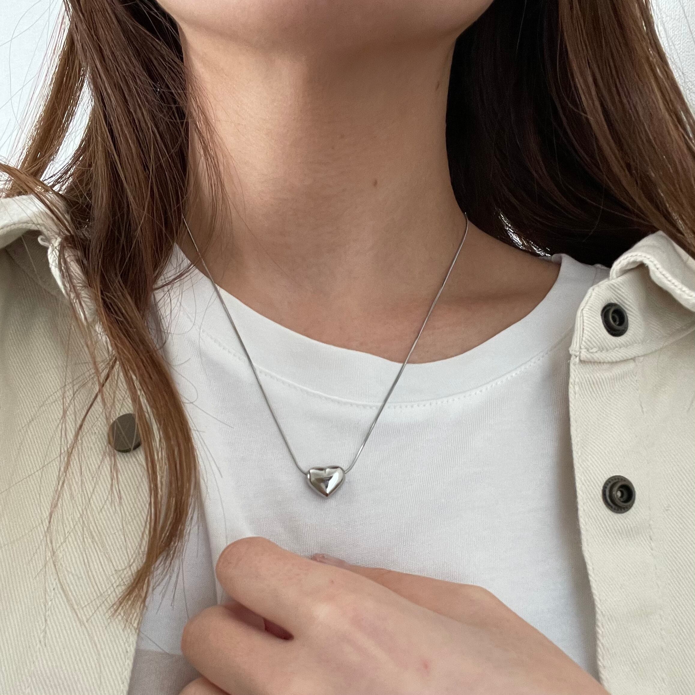 ぷっくりとしたハートのモチーフが可愛いネックレス。