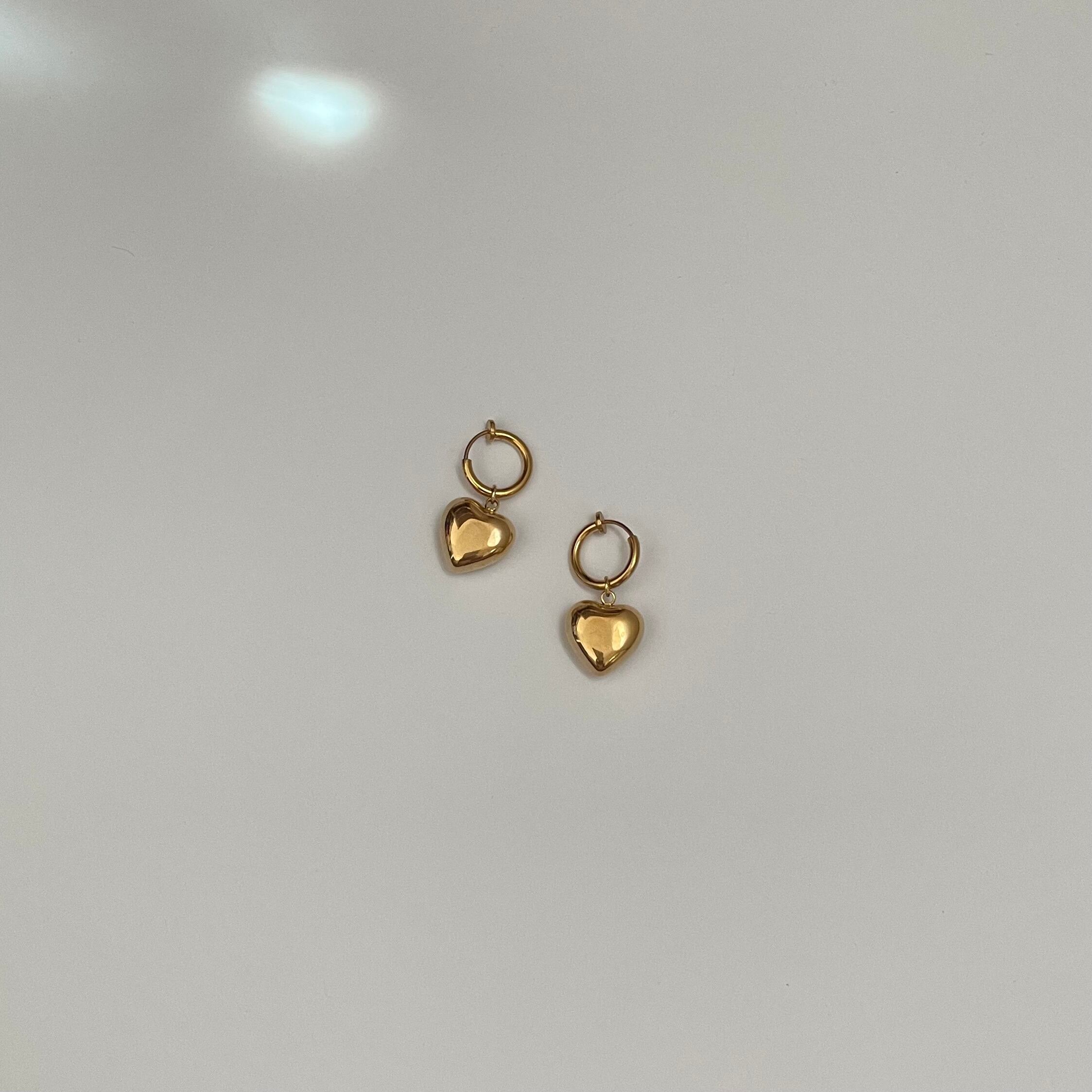 ステンレスのフープピアスにハートチャームをあしらったデザイン。