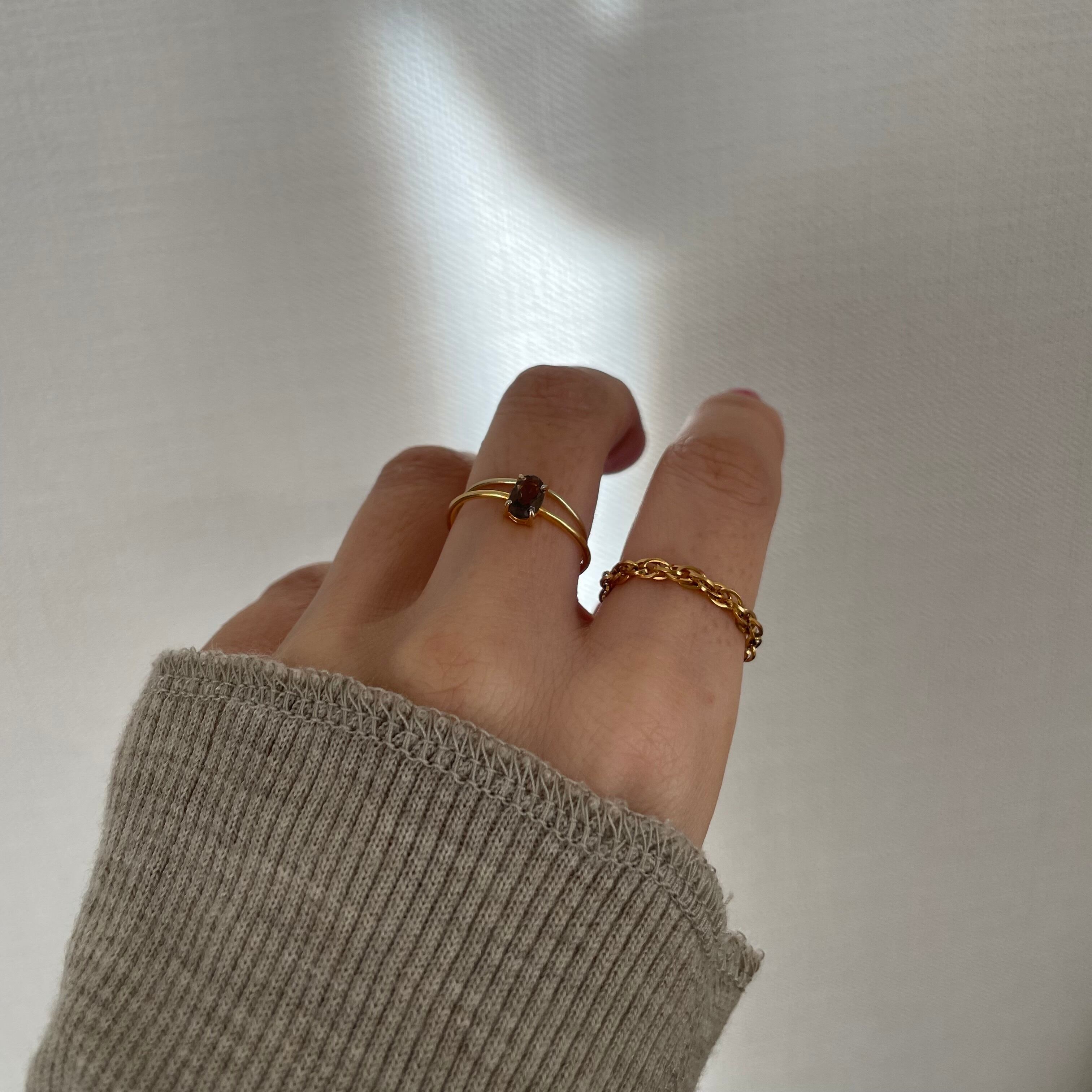 その名の通り、二つのリングが連なったデザインチェーンのリング。