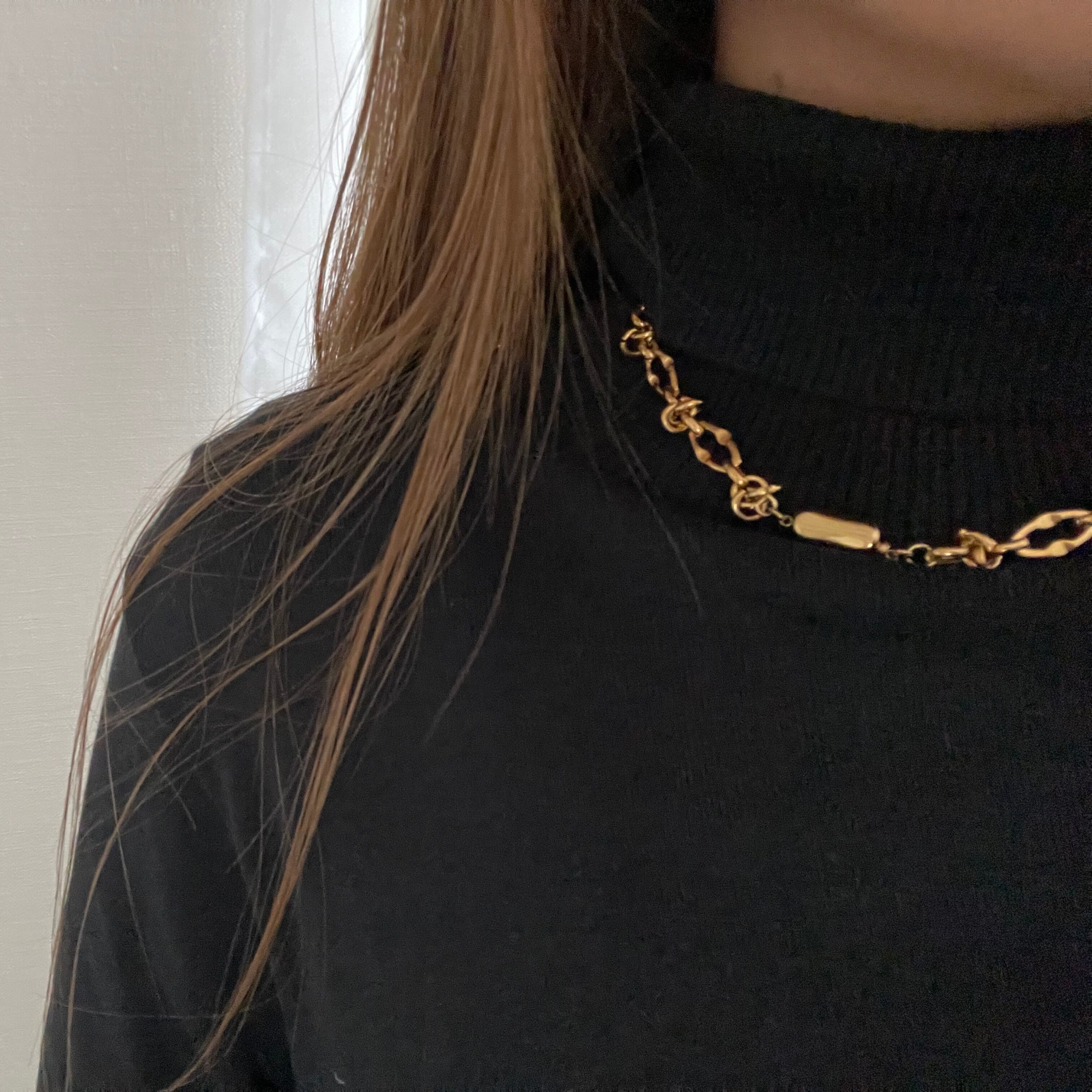 ひし形のようなデザインが連なった大ぶりのチェーンネックレス。