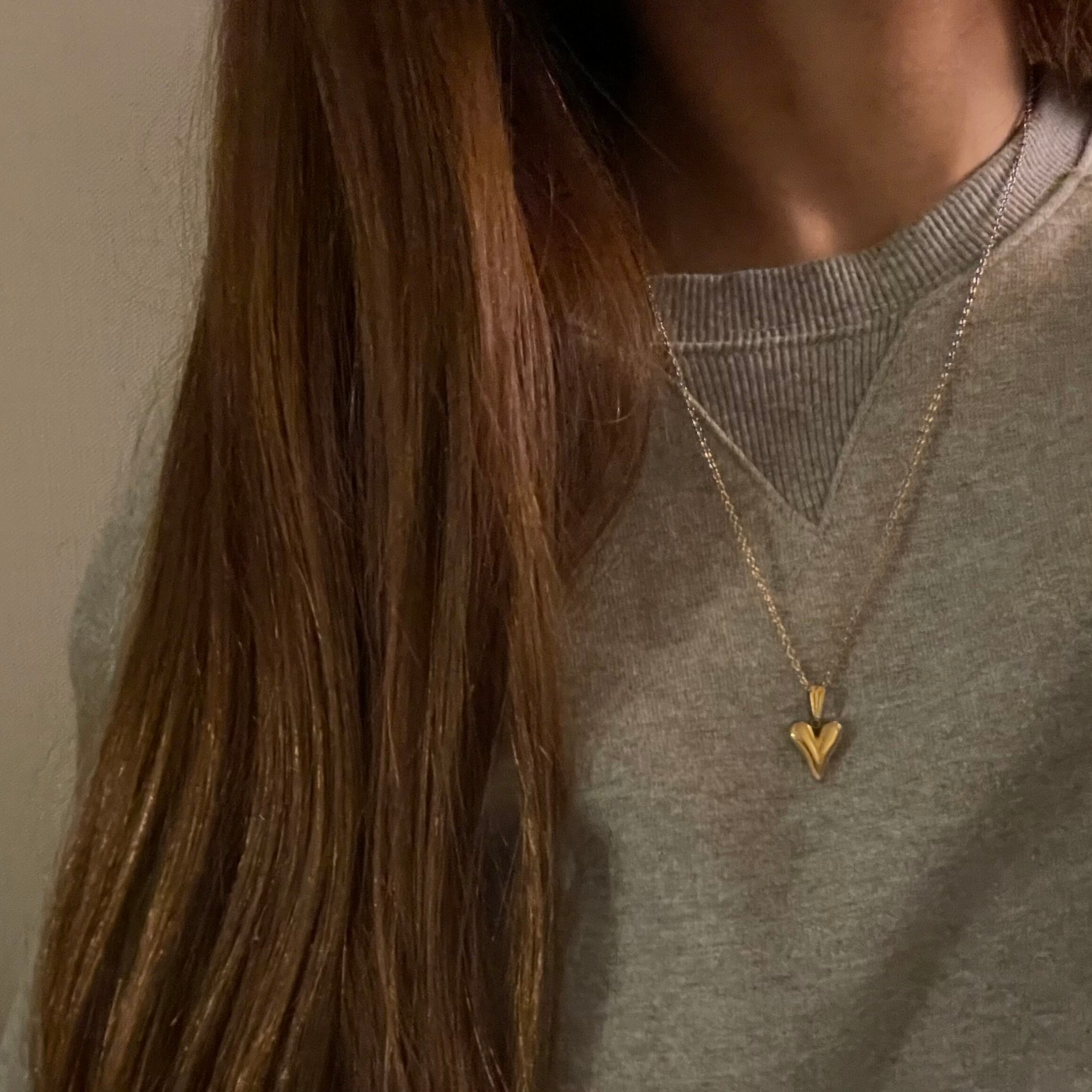 華奢で長めのチェーンネックレスはハイネックや厚手の服との相性もいいです。