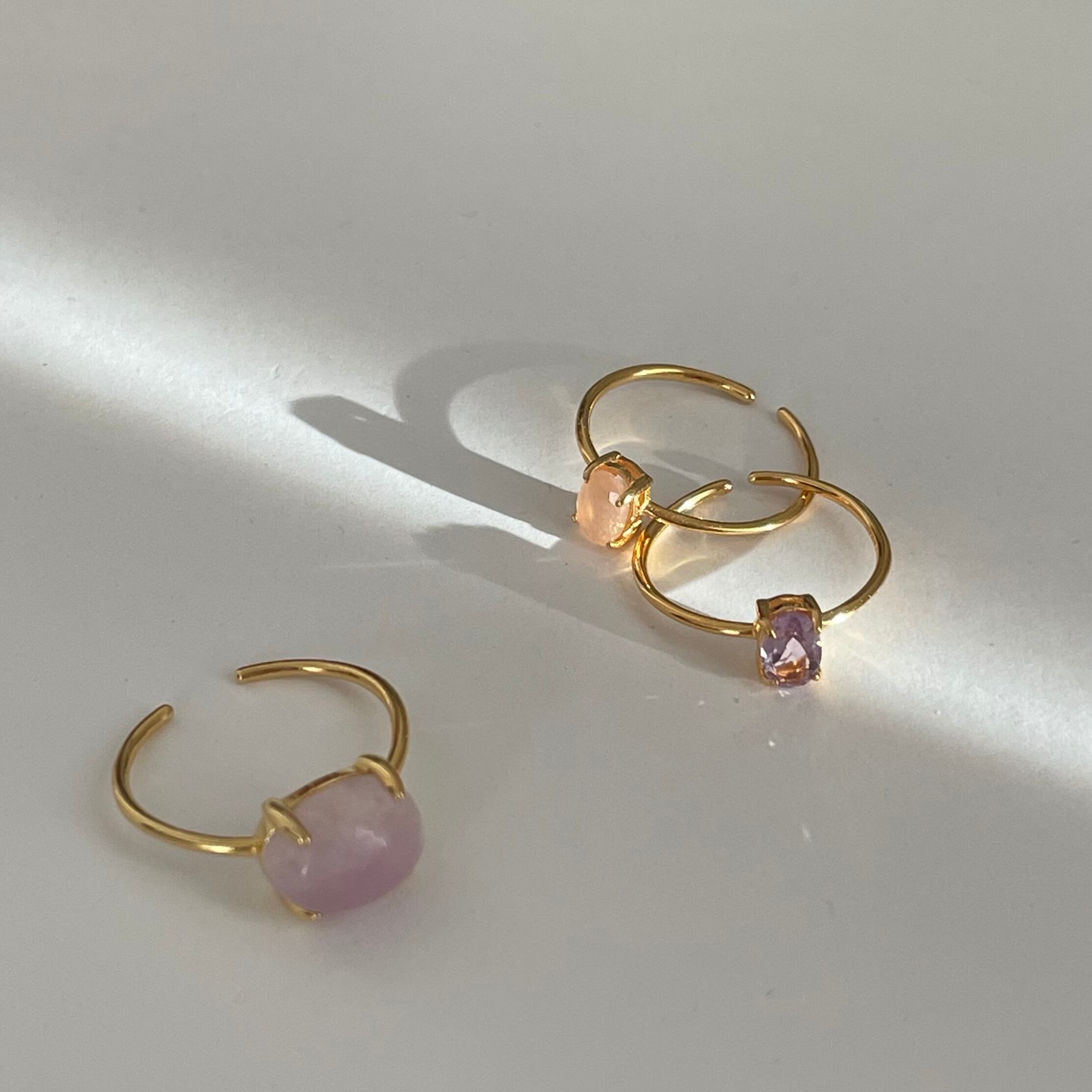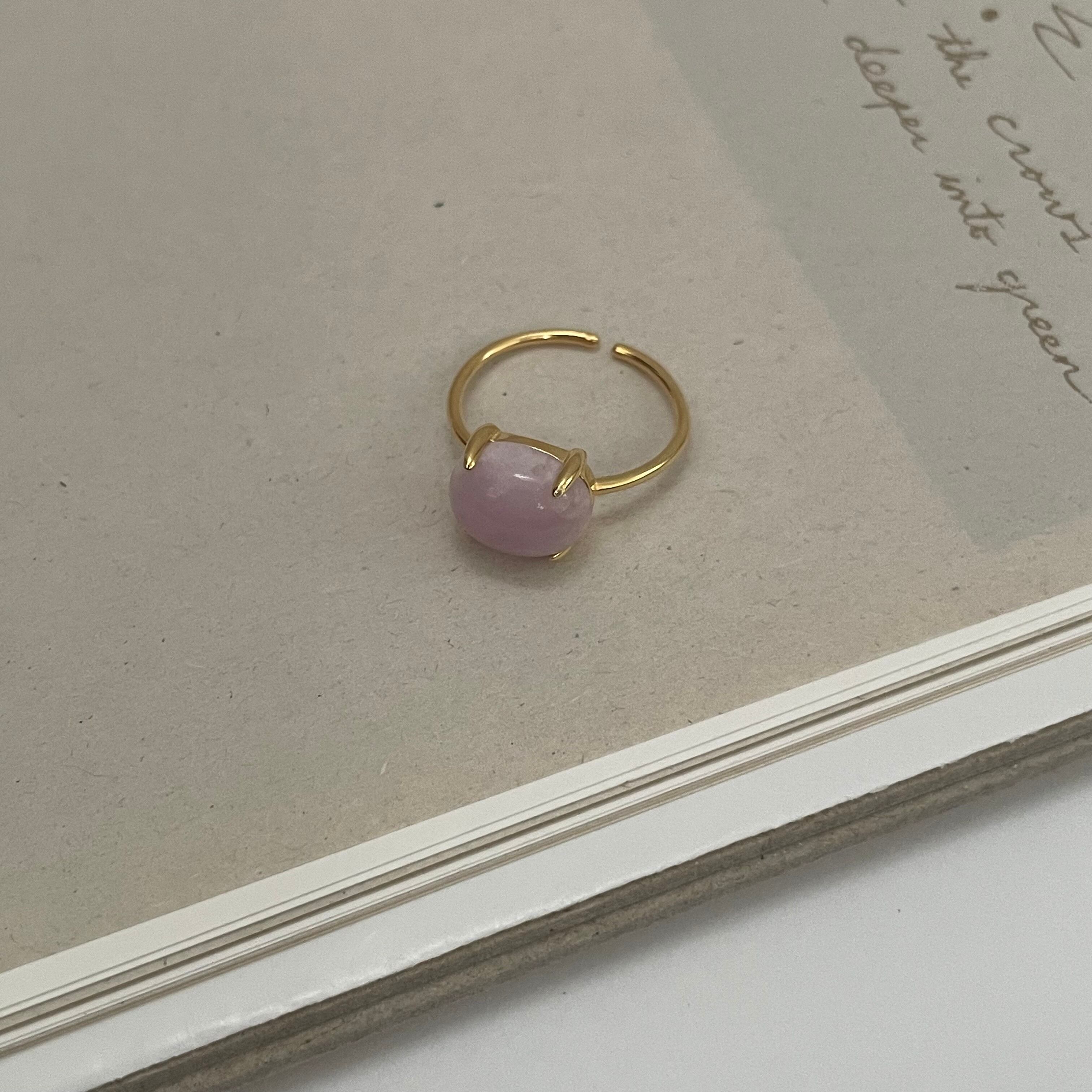 ミルキーなピンクパープルカラーのクンツァイトというストーンが華やかな印象のリングです。