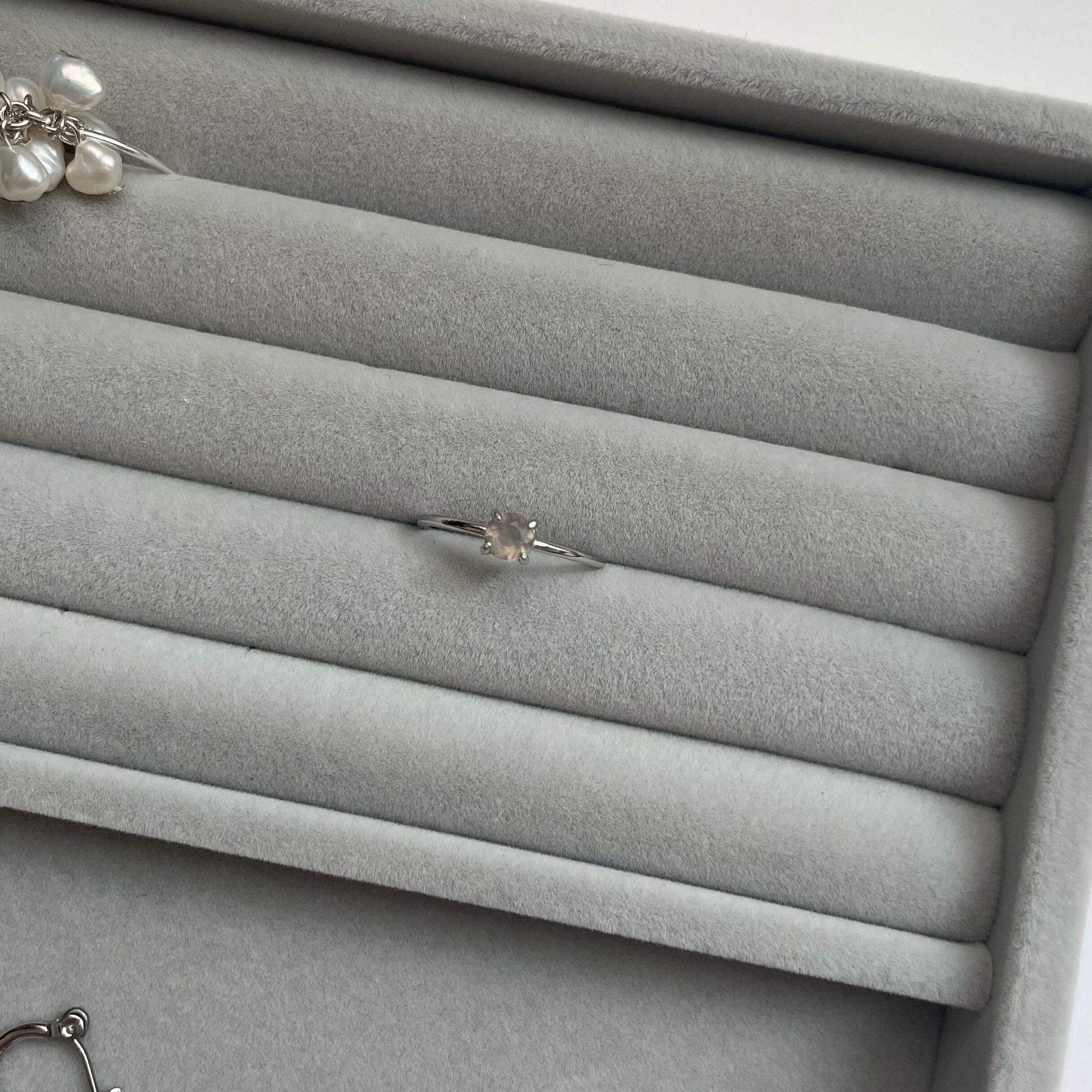 肌馴染みのいい優しい色合いのグレーオニキスをポイントにしたリング。
